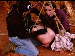 Andrea Vixon tied up and stuffed with dildo by costumed man